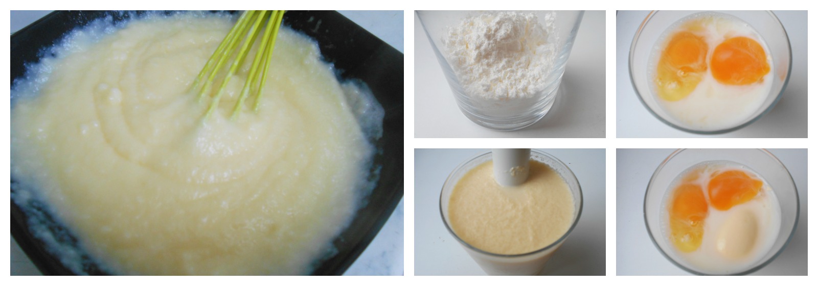 Ponemos en un recipiente apto para batidora la maizena, el azúcar, la mantequilla, el huevo y la yema suelta y la leche. Lo batimos todo bien y ponemos en un recipiente apto para microondas.